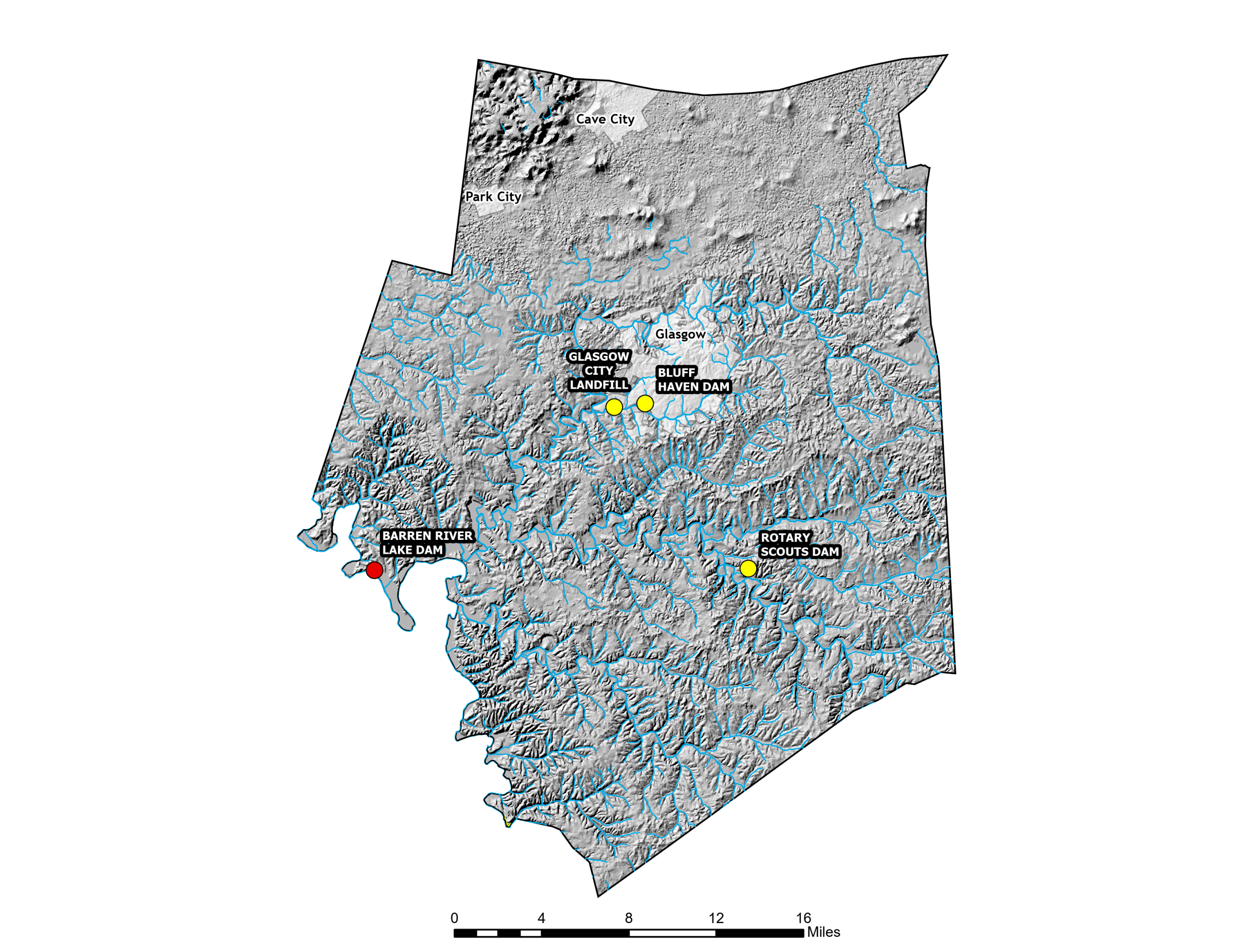 Dam failure is a low-probability, high-consequence hazard for Barren County. The Barren River Lake Dam (NID KY03009) is a federal project with robust oversight, but downstream communities remain exposed to rapid-onset flooding under breach or high-release scenarios.