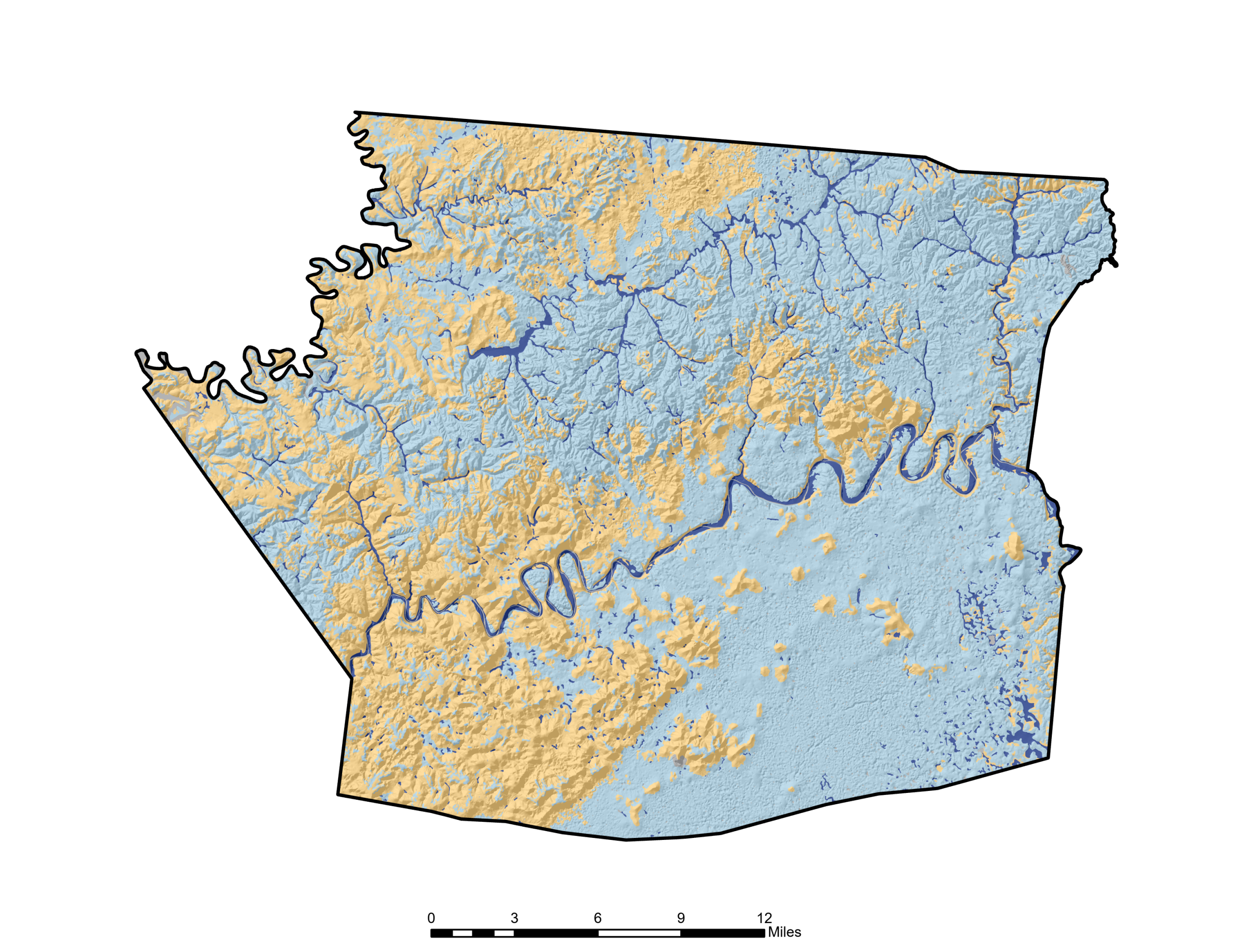 The soil susceptibility map indicates that large swaths of Hart County’s soil experience moderately high susceptibility to drought.