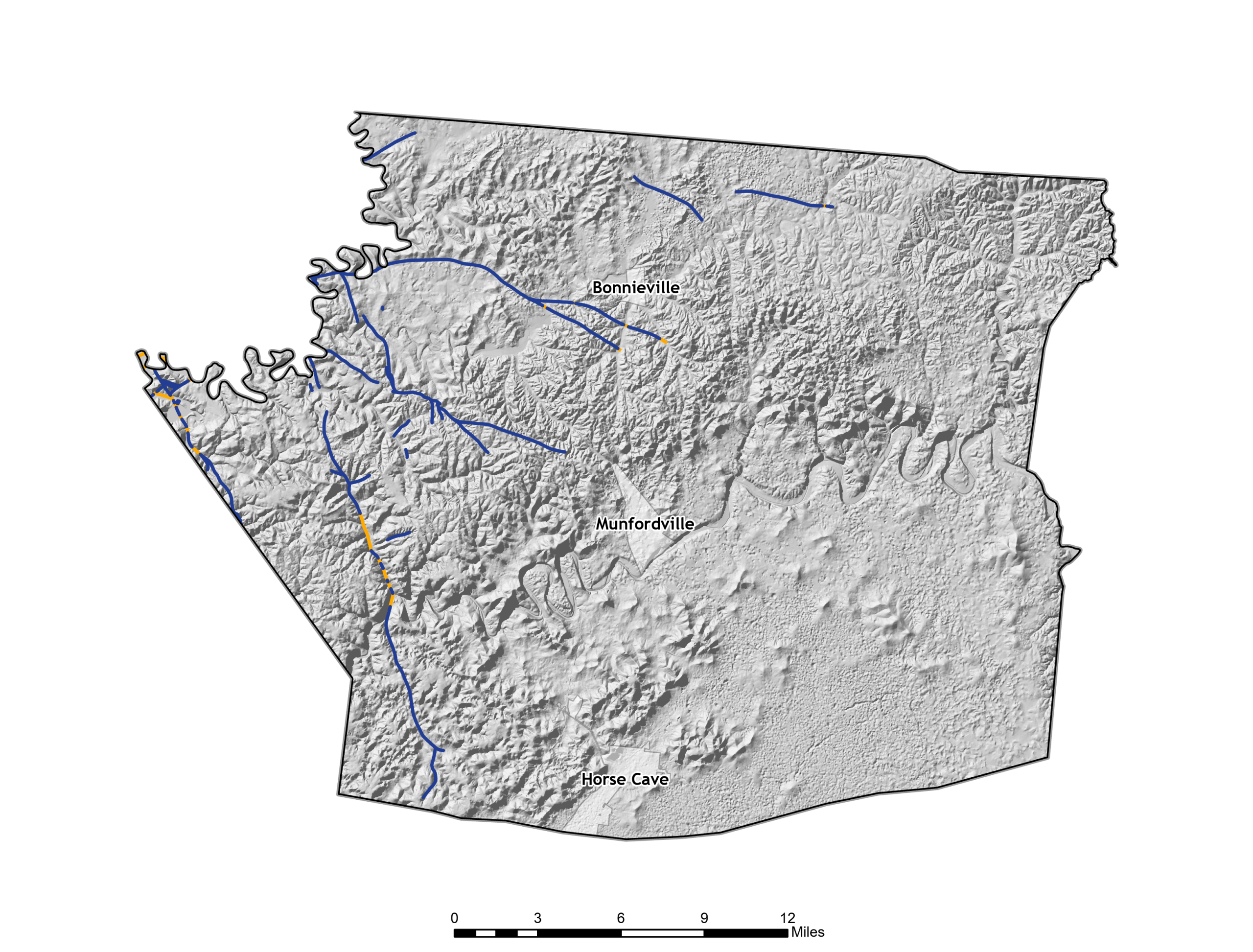 Because of these factors, Hart County experiences moderate vulnerability to tornadoes. Bonnieville, Horse Cave, and Munfordville reflect Hart County’s overall history of tornado events, and therefore experience moderate vulnerability as well.