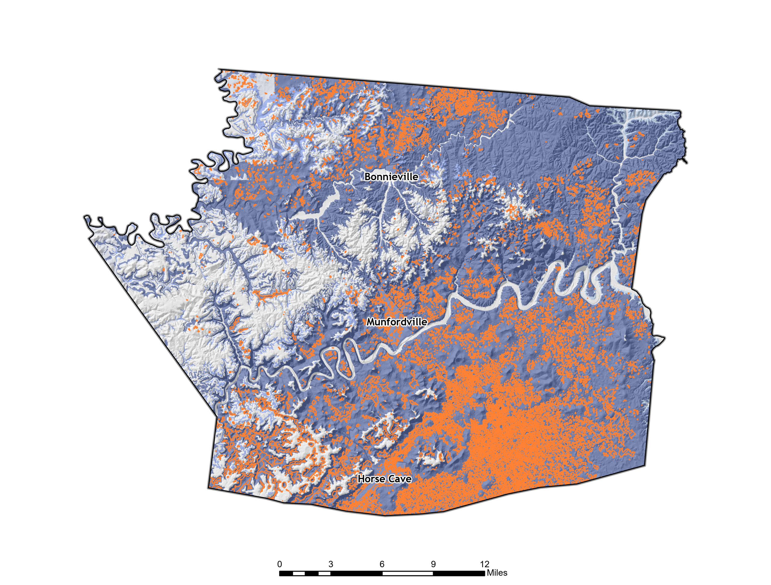 Because of these factors, Hart County experiences high vulnerability to severe storms. Bonnieville, Horse Cave, and Munfordville reflect Hart County’s overall history of severe storms, and therefore experience high vulnerability as well.